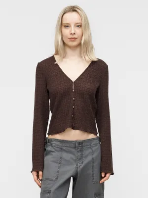 ONLY Gebreid vest ‘ONLILSE’ donkerbruin