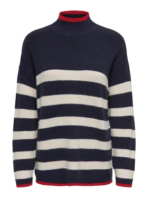 ONLY Trui ‘ONLKATIA’ donkerblauw / knalrood / wit