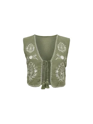 Only Onlthyra Sl Emb Vest Wvn Vest Kalamata Cloud Dancer Emb