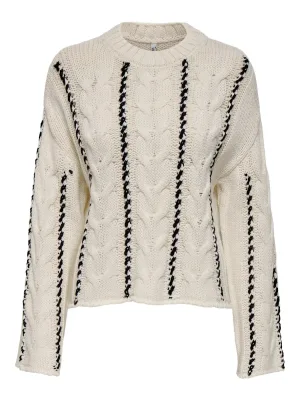Only Onltessa Ls Cabel Stitch O-neck Cc Knt Trui 4775223 Birch Melange/black