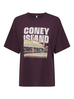 Only Onlmila S/s Print Box Jrs 15372177 T-shirt Korte Mouw 4991222 Grape Wine Mila Coney Islan