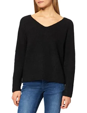 PIECES Gebreide damestrui, V-hals, zwart, L