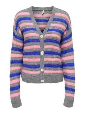 ONLY Gebreid vest ‘ONLPoppy’ donkerblauw / grijs gemêleerd / rosa