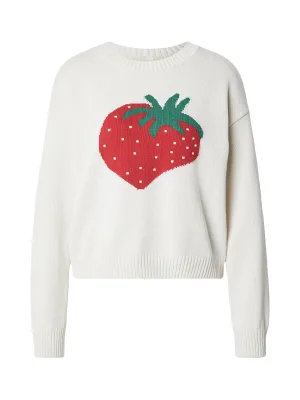 ONLY Trui ‘ONLELISE’ ivoor / jade groen / knalrood
