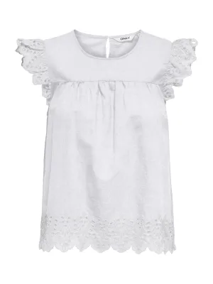 ONLY – ONLNEW MALOU L/S EMB TOP WVN CS Dames Top