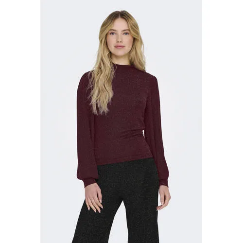 ONLY top met col met glitter donkerrood