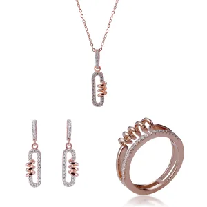 Orphelia ‘Gigi’ Dames 925 Sterling Zilveren Set: Halsketting + Oorbellen + Ring – Roze SET-7438