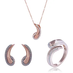 Orphelia ‘Tilou’ Dames 925 Sterling Zilveren Set: Ketting + Oorbellen + Ring – Roze SET-7441
