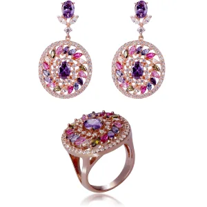 Orphelia ‘Enya’ Vrouwen 925 Sterling Zilver Set: Oorbellen + Ring – Roze SET-7428/RG
