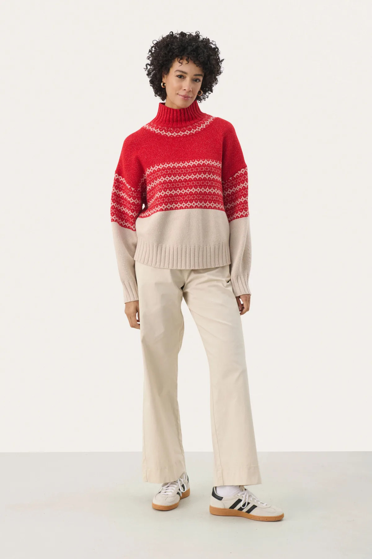 Part Two Jurk ‘NibiPW’ rood / pastelrood / wolwit