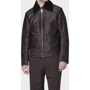 Paul Smith Slim Fit Leather Jacket Taupe