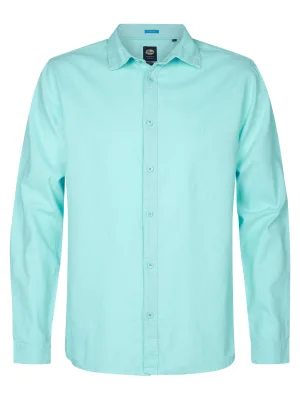 Petrol Industries – Heren Effen linnen overhemd Tealline – Blauw