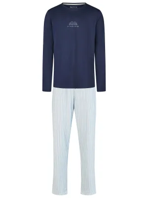 Phil & Co. Berlin Pyjama lang ‘Henley’ donkerblauw