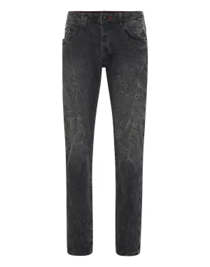 Denim Trousers Skinny Fit With Python Inserts