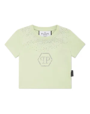 Cropped T-Shirt Strass Round Neck Ss Hexagon