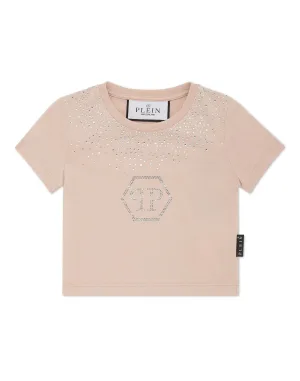 Cropped T-Shirt Strass Round Neck Ss Hexagon