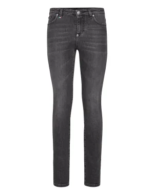 Mesh Strass Denim Trousers Skater Fit Ripped
