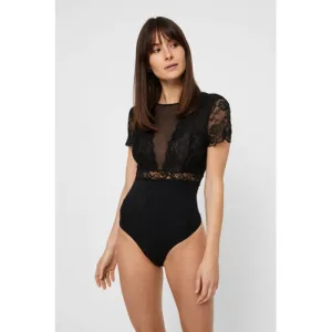 PIECES stringbody PCSICCA met mesh en kant zwart