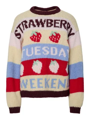 PIECES Trui ‘PCBikka’ lichtblauw / pasteelgeel / rood / wijnrood