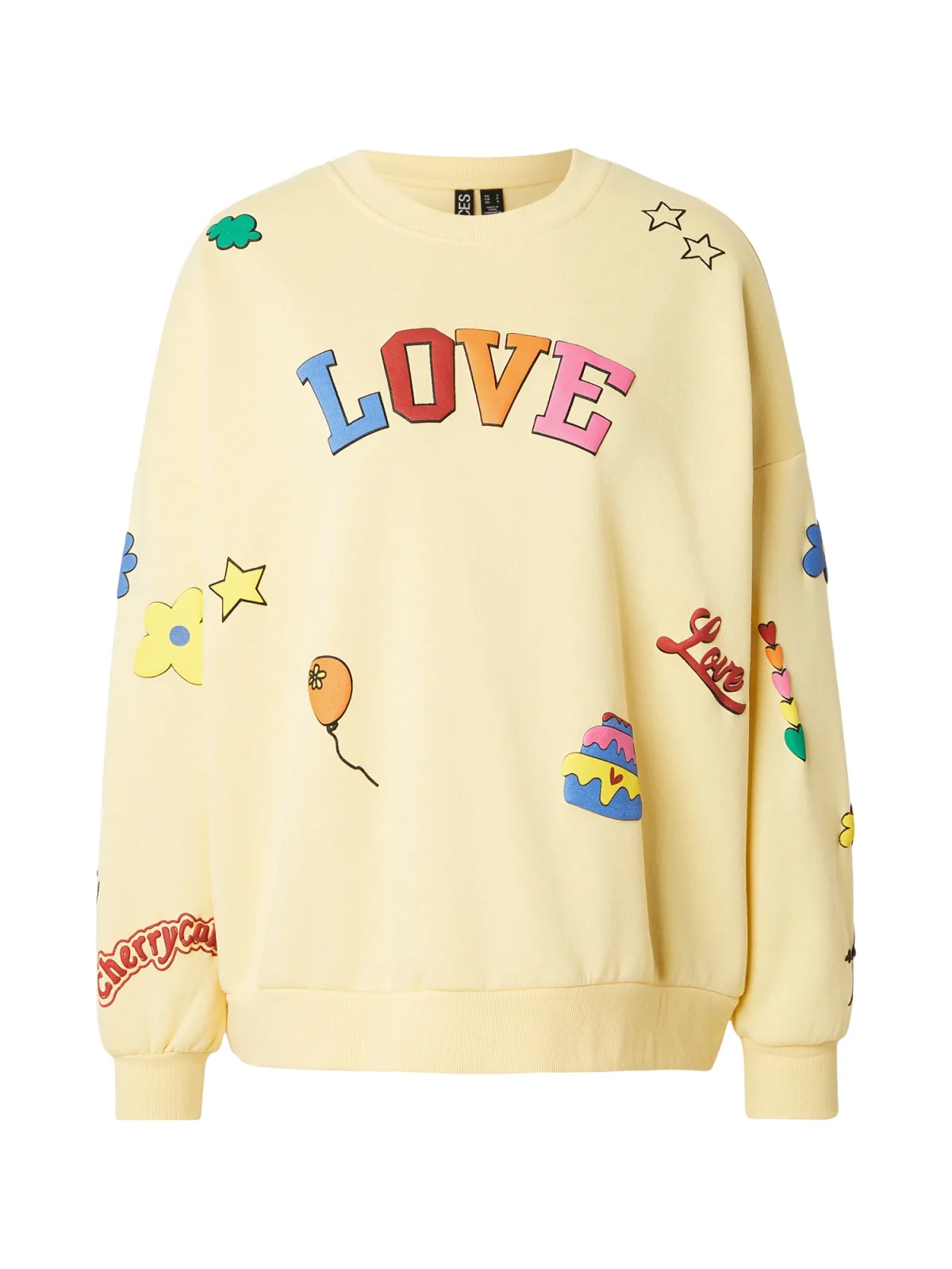 PIECES Sweatshirt ‘PCFAST’ nachtblauw / geel / orchidee