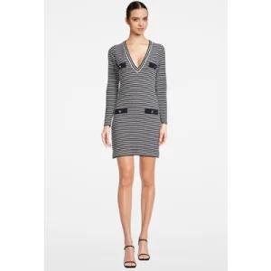 PINKO Yves Abito Tricot Boucle Rigat White/dark Blue