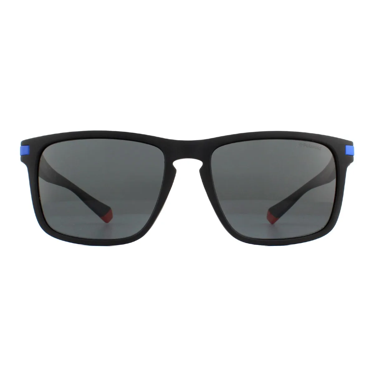 Polaroid rechthoekige heren mat zwart blauw grijs gepolariseerde zonnebril