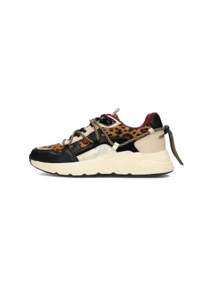 POSH by Poelman CAROCEL Dames Sneakers – Zwart Met Beige Combinatie
