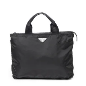 Tweedehands Saffiano Afgewerkte Tessuto Zip Top Schoudertas
