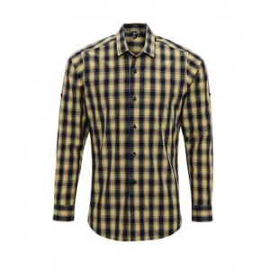 Premier Heren Mulligan Check shirt met lange mouwen (Kameel/Zwaar)