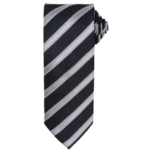 Premier Heren Streep Wafel Stropdas (Zwart/Donkergrijs)