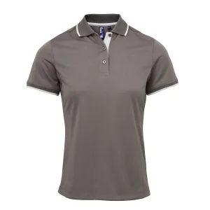 Premier Dames/dames Contrast Coolchecker Poloshirt (Donkergrijs/zilver)