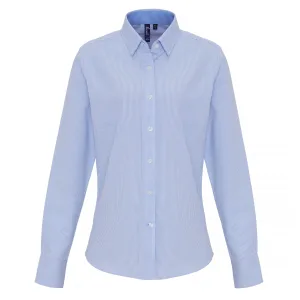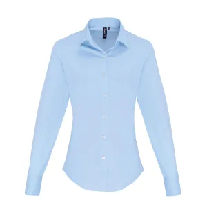 Premier Dames/dames Stretch Fit Poplin Blouse met lange mouwen (Lichtblauw)