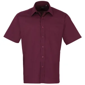 Premier Heren Korte Mouw Formele Poplin Gewoon Werk Shirt (Aubergine)