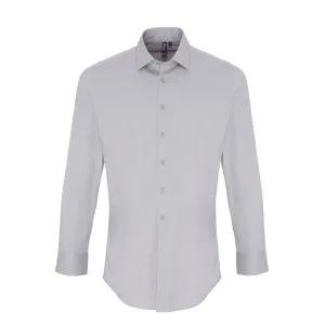 Premier Heren Rekken Pasvorm Popeline Lange Mouwen Shirt (Zilver)