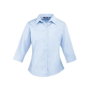 Premier Dames/Dames Poplin 3/4 Mouw Shirt (Lichtblauw)