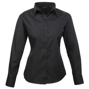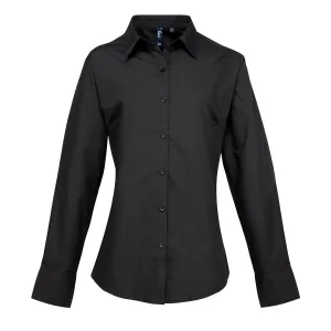 Premier Dames/Dames Popeline Blouse met Lange Mouwen (Zwart)