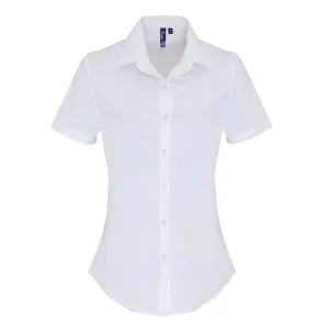 Premier Dames/dames Stretch Fit Poplin Korte Mouw Blouse (Wit)