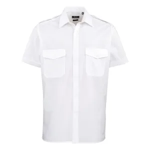 Premier Heren Korte Mouw Piloot Werk Shirt (Wit)