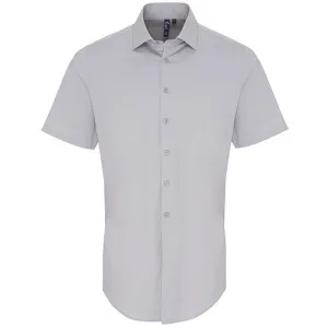 Premier Heren Poplin Stretch Overhemd met Korte Mouwen (Zilver)