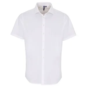 Premier Heren Poplin Stretch Overhemd met Korte Mouwen (Wit)