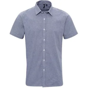 Premier Heren overhemd met korte mouwen in geruit katoen (Marine / Wit)