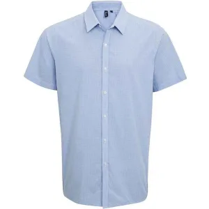 Premier Heren overhemd met korte mouwen in geruit katoen (Lichtblauw/Wit)