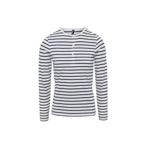 Premier Dames/Dames Lang John Gestreept Rol Mouw T-shirt (Wit/Zwaar)