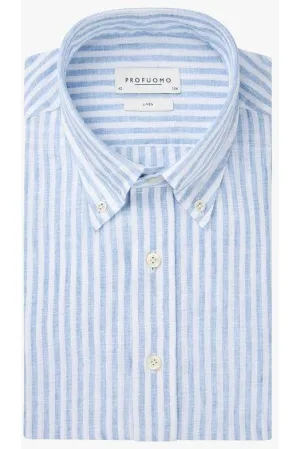 Profuomo slim gestreepte casual overhemd beige