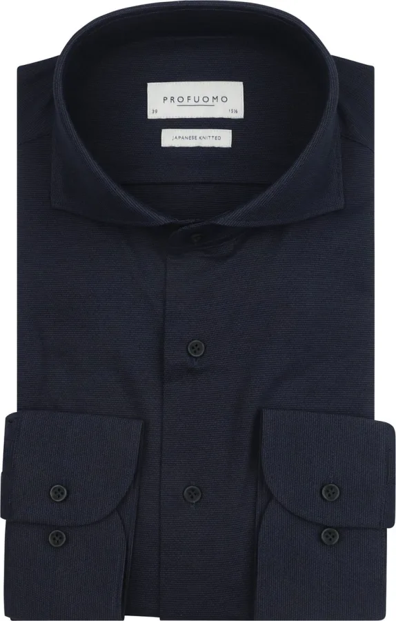 Profuomo Japanese Knitted Overhemd Structure Navy