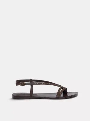 Pull&Bear Sandalen met riem donkerbruin / goud