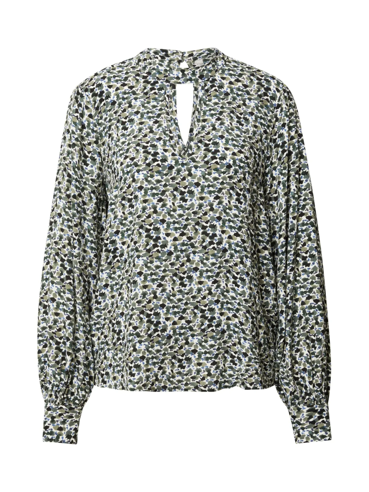 PULZ Jeans Blouse ‘CAROK’ navy / kaki / zwart / wit