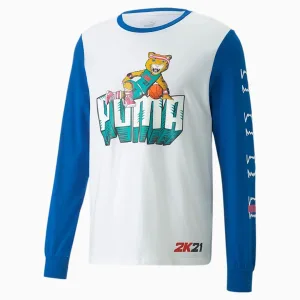 Puma x 2K Lange Mouw Crew Hals Wit Blauw Heren Katoenen Top 532921 01