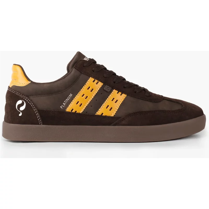 Heren Sneaker Platinum – Donkerbruin/Geel
