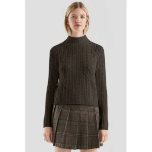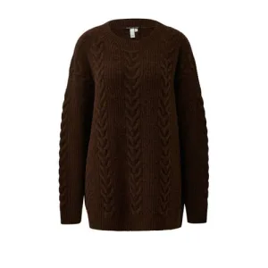 QS gebreide trui donkerbruin met kabels